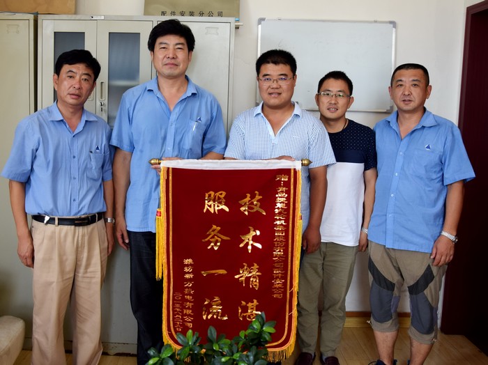 9月8日,用戶(hù)濰坊新方熱電公司人員帶著(zhù)錦旗和感謝信,專(zhuān)程前來(lái)對我公司幫助搶修機組并一次性開(kāi)機成功表示感謝。錦旗上的“技術(shù)精湛,服務(wù)一流”,感謝信中的“我們由衷的感謝貴公司的積極協(xié)助幫助”,表達了用戶(hù)誠摯的謝意。