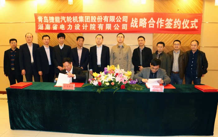 2016年3月14日,中國能源建設集團湖南省電力設計院有限公司李屹立院長(cháng)一行九人來(lái)我公司進(jìn)行戰略合作洽談。雙方在信任、合作、共贏(yíng)的友好氣氛中,就我公司汽輪機、發(fā)電機和空冷島的配套服務(wù)以及在電力建設方面進(jìn)行了廣泛而深入的交流。雙方經(jīng)交流達成一致,簽署了“青島捷能汽輪機集團股份有限公司與中國能源建設集團湖南省電力設計院有限公司戰略合作協(xié)議”,并與我集團子公司青島捷能電力建設有限公司簽署了“電力工程項目合作意向書(shū)”。