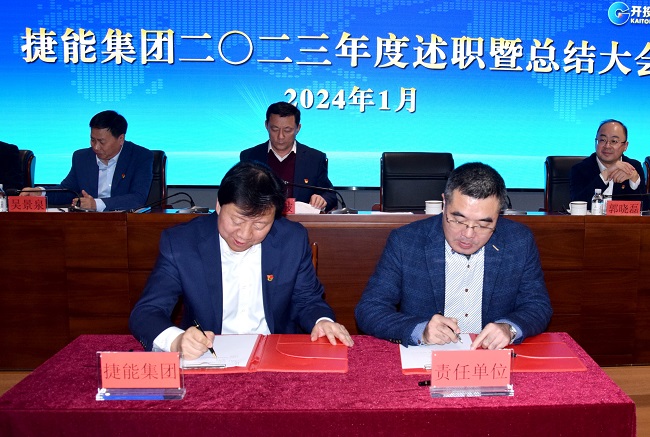 會(huì )上捷能集團與相關(guān)獨立考核單位簽訂了2024年度經(jīng)營(yíng)目標責任書(shū)。