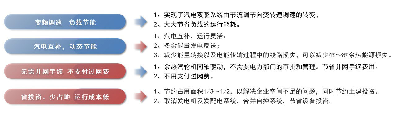 變頻汽電雙驅技術(shù)是余熱綜合利用發(fā)展進(jìn)程中一個(gè)劃時(shí)代的進(jìn)步,以全新的理念開(kāi)辟了一條新節能之路,大幅度提升了余熱綜合利用效率,是新質(zhì)生產(chǎn)力的體現。